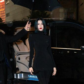 三吉彩花出席巴黎世家上海早春秀,一身全黑着装的她太酷了,完美身材搭配蓝色发色,帅气又有魅力